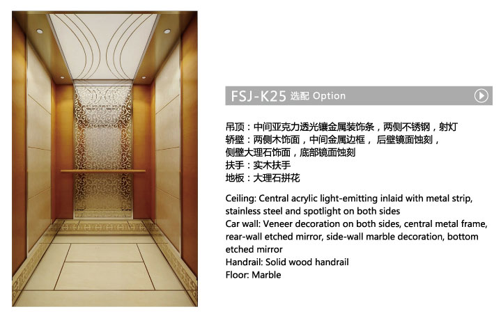 We apply new shock-absorbing composite stainless steel materials with low carbon environment-protection, solid structure, fine damping and noise-reducing effects.Fushijia elevators are durable and beautiful.